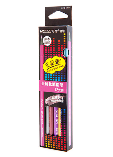 5101B金属炫彩铅笔系列突破传统彩铅的概念,超酷环保黑木搭配金属色彩芯,为创作者提供更为广泛的金属色泽的选择;无论在传统的画纸或特殊艺术类纸张上都能呈现出创造性的艺术效果,尤其是在黑卡纸上。