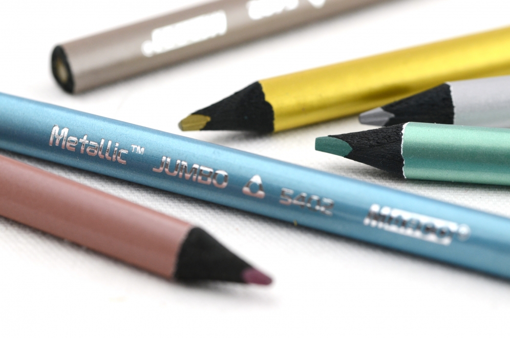 5402B金属炫彩铅笔系列突破传统彩铅的概念,超酷环保黑木搭配金属色彩芯,为创作者提供更为广泛的金属色泽的选择;无论在传统的画纸或特殊艺术类纸张上都能呈现出创造性的艺术效果,尤其是在黑卡纸上。